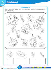 COLORA LE FOGLIE DELLA STESSA FORMA CON LA STESSA TINTA, POI CONTALE E SCRIVI QUANTE FOGLIE